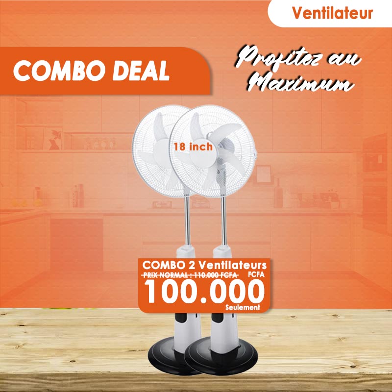 Avec le Kit Combo Deal de Sodishop, plus vous achetez et plus vous économisez. Associez-vous à un collège, ami ou frère pour acheter à plusieurs à petit prix. L’offre comprend deux ventilateurs rechargeables multifonction 18 pouces, de très bonne autonomie.Et Oui ! Sur Sodishop, faites des économies sur nos offres spéciales.
